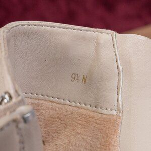 They are crafted from a beautiful, luxe ivory leather and feature a stunning, polished chain link detail for a touch of glam. This is the ultimate boot for a "Clean Girl" or "Light Academia" aesthetic.
