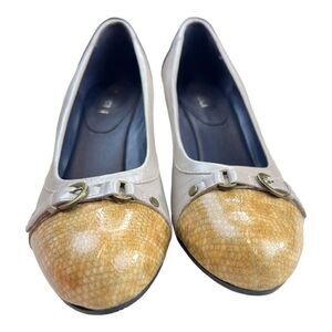 Vaneli Women's Cap Toe Slip On Pumps Wedge Heels Shoes Ivory White Gold Size 6.5