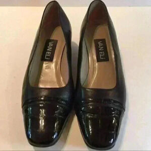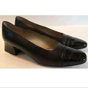 Vaneli Womens Heels Size 6 Black Leather Cap Toe