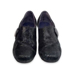 Vaneli Womens Loafer Shoes Black Snakeskin Embossed Monk Strap Round Toe US 6 M