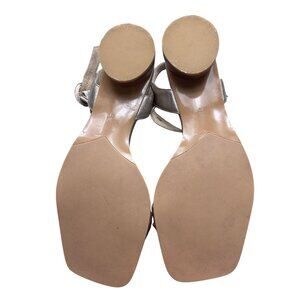 These Vaneli sandals showcase a sophisticated metallic finish and a stylish braided leather strap, providing both elegance and comfort. The sandals, with their adjustable ankle strap and cushioned footbed, are designed for all-day wear. Perfect for adding a touch of glamour to professional or formal attire.