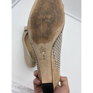 Vaneli Women’s Peep Toe Perforated Patent Leather Cork Wedge Beige Tan Size 9N.