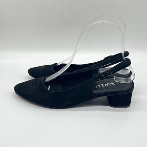 Vaneli Womens Size 6.5 Black Suede Leather Slingback Low Pumps Heels Shoes