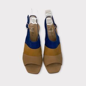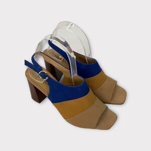 Vaneli Womens Slingback Heel Brown Leather Color Block Buckle High 7 M New