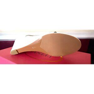 Channel impeccable modern style in this T-strap sandal set on a sleek wedge heel.
