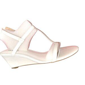 Vaneli Womens White Patent Leather T Strap Open Toe Wedge Sandals Sz 9 M New