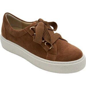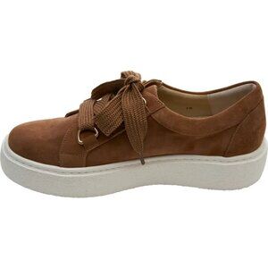 Suede athleisure sneaker with oversized laces and a platform sole. Size 7N (Narrow). Gorgeous rich camel brown color.