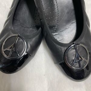 Vaneli black leather flats shoes round toe with a silver tone logo accent SZ9M
