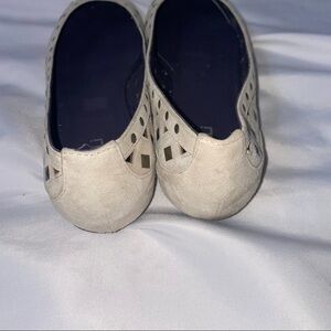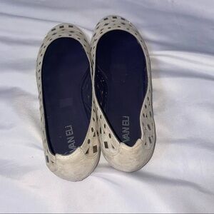 Vaneli criss cross leather studded flats SZ 8.5 Off white/cream colored breathable flats/slip on/ballet flats. Minimal signs of wear.  Minor scuffs on toe and one missing stud on toe - See pic.