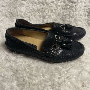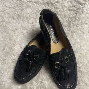 Vaneli leather patent reptile print Black Loafers with Tassel accent.SZ9.5M