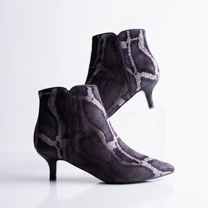 Womens Taima Black Gray Velvet Snake Print Ankle Booties