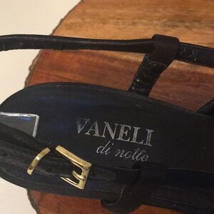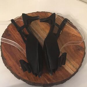 Vaneli di Notte Black Satin Slingback Rhinestone Bow Shoes