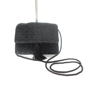 | Vanessa | Black Textured Fabric Tassel Small Evening Cocktail Purse Bag