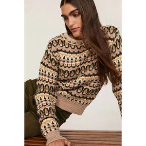 Vanessa Bruno Alpaca Ventura Fair Isle Wool Sweater Beige Multicolor Knit Small