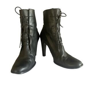 Vanessa Bruno Tie High Heel Witch Granny Boots in Black Leather Size 40/ US 9