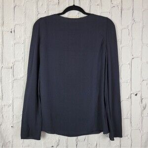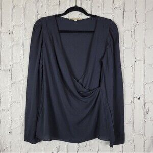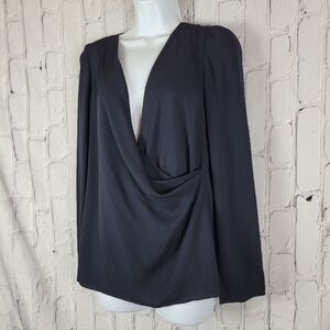 Vanessa Bruno solid black silk long sleeve cross drapey faux wrap blouse top