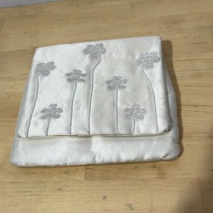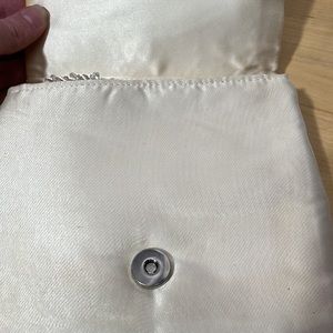 Vanessa Cream Crossbody Purse With Faux Pearl Accents 6" x 7" with 23” drop for cross body strap