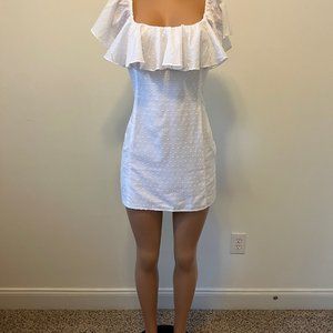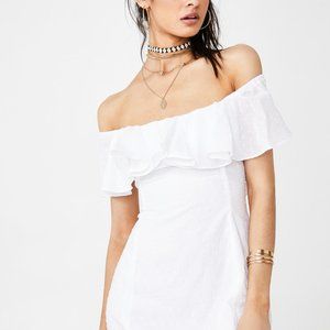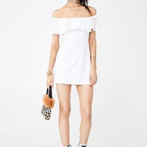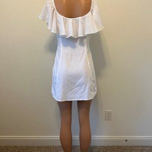 Simply irresistible. Features a ruffled top that can be worn on or off the shoulder. Fully lined, with a super slimming waist, hidden side zipper closure, and a slightly flared mini length. Vanessa Mooney uses batches of limited, vintage, or upcycled fabrics, sustainably made & sustainably sourced. Each small production is made with a unique batch of recycled fabrics. The fabrics will differ slightly in color, thickness & weight due to the varying vintage lots we choose to produce with. The detail, thought & intention behind every piece of clothing made is to bring you a unique timeless, versatile, but truly limited style you can feel gorgeous in. At the same time doing our part to help this beautiful planet of ours. Made from a vintage Cotton Blend Dry Clean Only Designed in Los Angeles Approximate Measurements Made While Laying Flat: Dress Length: 24” front (top of neckline to bottom hemline) Bottom Width: 22” Top Width: 16 3/4” (bottom of armpit to armpit) Waist Width: 14” (smallest width on dress) Questions? Offers? Comment below!!
