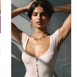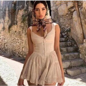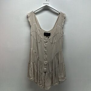 Vanessa Mooney The Elizabeth Romper Dress Mini Sleeveless Button Cream New Large