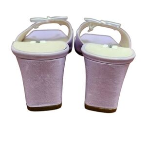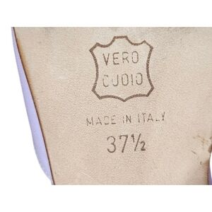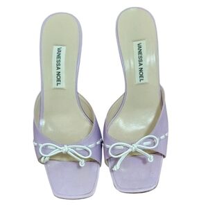 Elevate your footwear collection with the chic Vanessa Noel leather block heel slides. Crafted with exquisite attention to detail, these mules feature a elegant lavender hue that adds a touch of whimsy to any ensemble. Designed for the fashion-forward woman, the size US 7 (EU 37.5) ensures a comfortable fit for those with discerning taste and a penchant for quality. The sturdy block heel offers both style and stability, making these slides perfect for a variety of occasions, from a day at the office to a casual brunch with friends. The durable leather upper material promises long-lasting wear, while the versatile mule style effortlessly complements the modern woman's wardrobe.