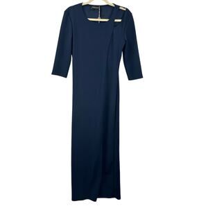 Vanessa Scott Navy Blue Midi Dress Shoulder Cut Out Slit Detail Size Large NWT