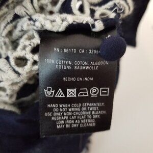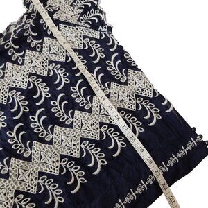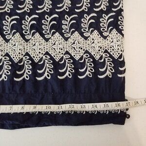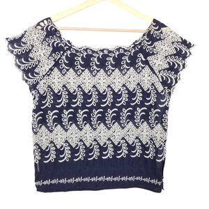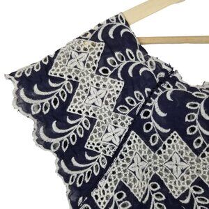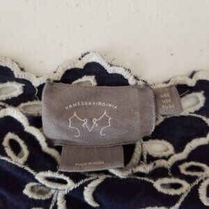Vanessa Virginia 4 Blue White Eyelet Blouse Wideneck Cap Sleeves Boho Cottage