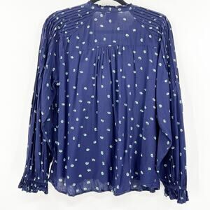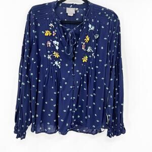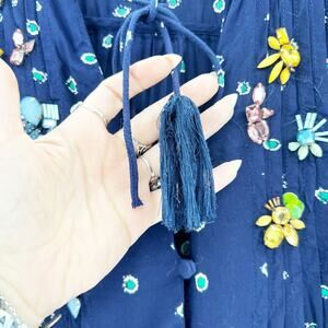 Vanessa Virginia Anthro Blue Long Sleeve Floral Jeweled Top Blouse 12