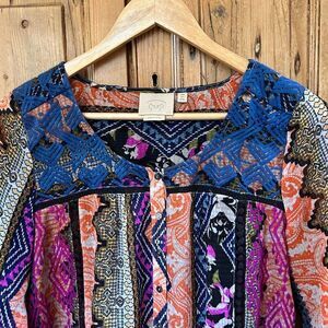 Vanessa Virginia Anthropologie 4 Blouse Multicolor Abstract Pattern Half Button