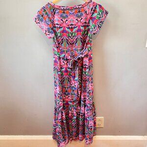 Vanessa Virginia Anthropologie Beaded Mural Maxi Dress With Geometric Print-Sz.