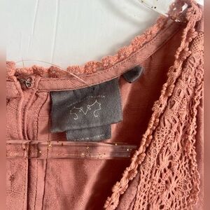 Vanessa Virginia Anthropologie Mauve Embroidered Trim Square Neck Top Size 12