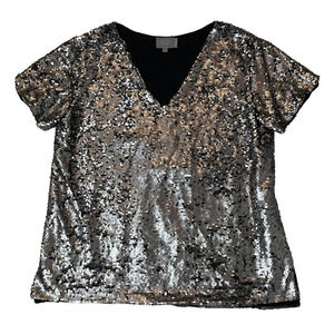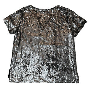 Vanessa Virginia Anthropologie Silver Sequin Short Sleeve Top size Large