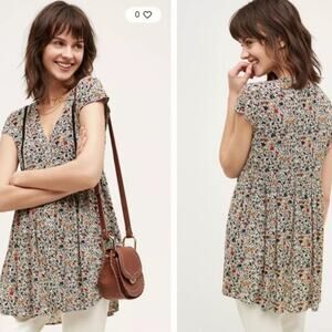 Vanessa Virginia Anthropologie floral ladder long tunic top