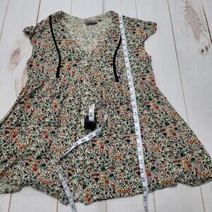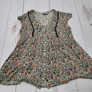 Lovely Vanessa Virginia from Anthro floral top! Long tunic style length with ladder lace detailing. In excellent condition, size small.