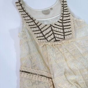 Vanessa Virginia Anthropologie Top Womens 6 Ivory Beaded Embroidered Sleeveless