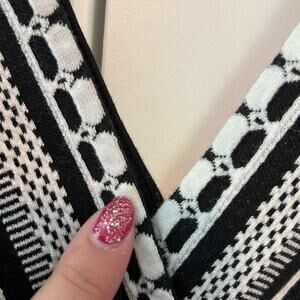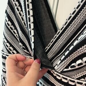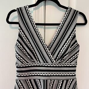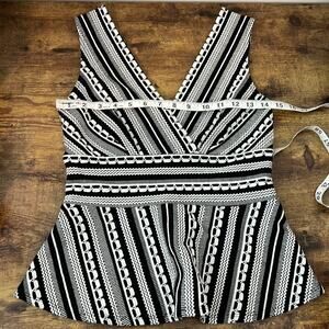 Vanessa Virginia Black & Off White Plunge Neck Peplum Sleeveless Top