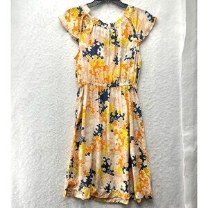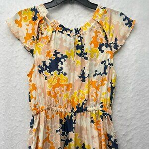 Vanessa Virginia Dress Women's Sz 2 Orange Floral Keyhole Short Sleeve 100% Silk