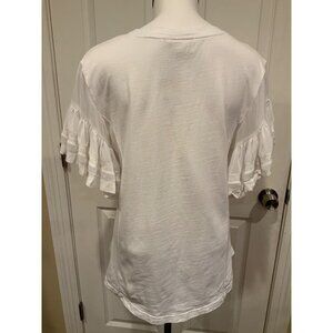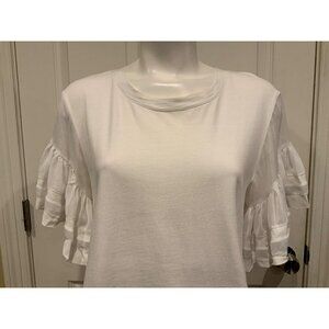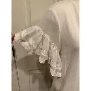 Vanessa Virginia White Shirt W/ Short Sheer Flounce Sleeves, Size Medium