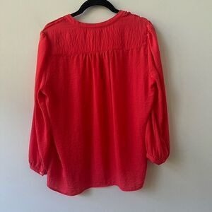 Vanessa Virginia Women's Orange Long Sleeve High Low Hem Button Front Blouse Small