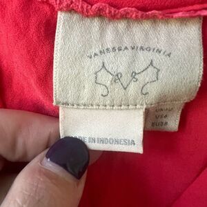 Vanessa Virginia Women's Orange Long Sleeve High Low Hem Button Front Blouse Sm