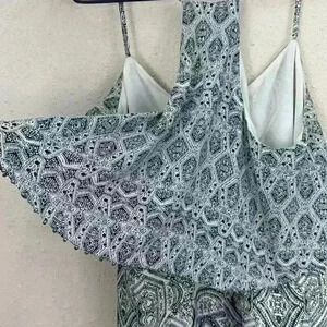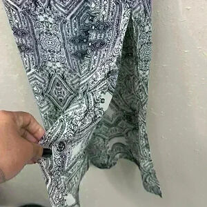 Elevate your wardrobe with this stunning Vanessa Virginia maxi dress in a US size 2. The dress showcases an intricate black and white paisley pattern that exudes a timeless elegance, perfect for both casual and formal occasions. Crafted from a lightweight and breathable fabric, it offers a comfortable fit throughout the day. The design features thin spaghetti straps that lead to a flattering V-neckline, complemented by a tiered ruffle overlay for a touch of romance and movement. This maxi dress flows gracefully to the floor, creating a beautiful silhouette that flatters various body types. Whether you're attending a garden party or dining al fresco, this maxi dress is sure to turn heads. Side slip