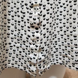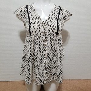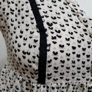 Heart Ladder Lace Tunic. Button front. Pockets! Comes with an extra button on the side tag. Adorable heart polka dot style print -- would be perfect to wear for Valentine's Day!