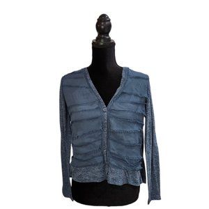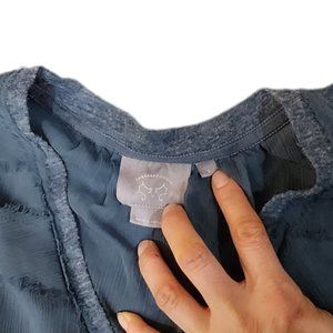 Vanessa Virginia Split Back Flowy Sheer Mix Layer Green Blouse Top Shirt S
