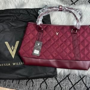 Vanessa Williams Quilted Laptop Bag Shoulder Tote Travel Burgundy Wine Red NWT