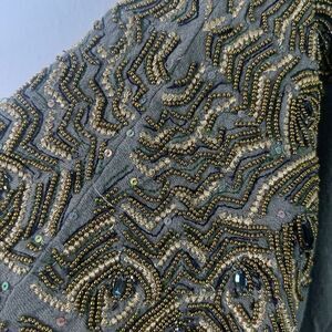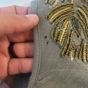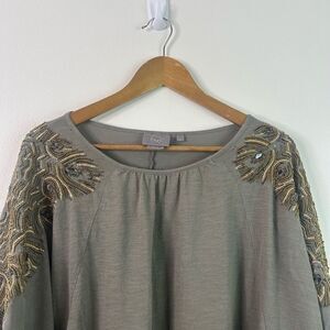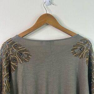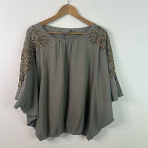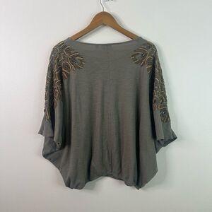 Vanessa Virginia M/L Gray Beaded Batwing Top Boho Embellished Cotton Glam
