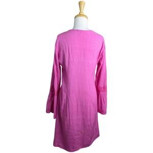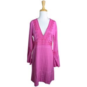 Vanesska for Calypso Christiane Celle Mini Dress Small Pink Embroidered Bell Sleeve Y2K Babydoll Coquette
