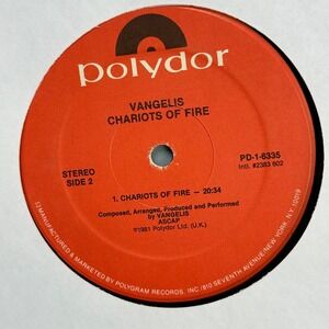 Original soundtrack to the iconic film, Chariots of Fire, composed and performed by Vangelis. This 1981 Polydor release features the unforgettable themes from the movie, including "Titles," "Five Circles," and the Academy Award-winning title track.