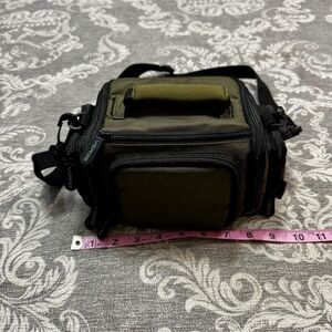 The Vanguard Camera Bag is your perfect companion for every photography adventure. Designed to fit your essential lens accessories, this bag is crafted from durable nylon in a stylish green hue. With its sturdy build and padded protection, your gear stays safe and secure. Multiple pockets offer organized storage, while the adjustable strap ensures comfortable carrying. The soft lining adds an extra layer of care for your equipment. This pre-owned bag is ready to support your creative journeys with reliability and style.