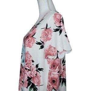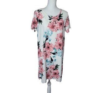 Vanilla Bay Dress Floral Short Sleeve White Pink Roses Short Womens Large