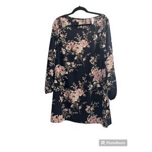 ✨Vanilla Bay Floral Dress Large Long Sleeve Dark Pink Cream Shift✨