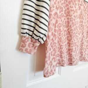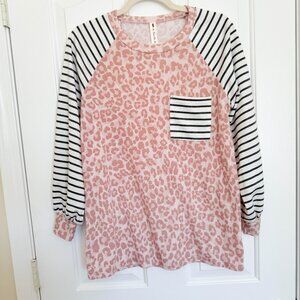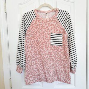 Vanilla Bay Pink Leopard Print Gray and White Stripes Womens Longsleeve Sz Small